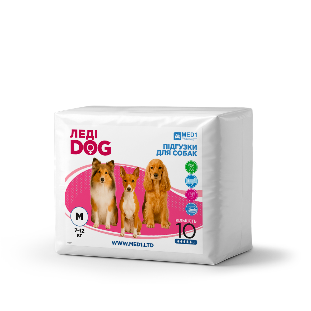 Підгузки для собак Леді Дог, розмір M (10 шт. в пакованні) MED1-LD-M